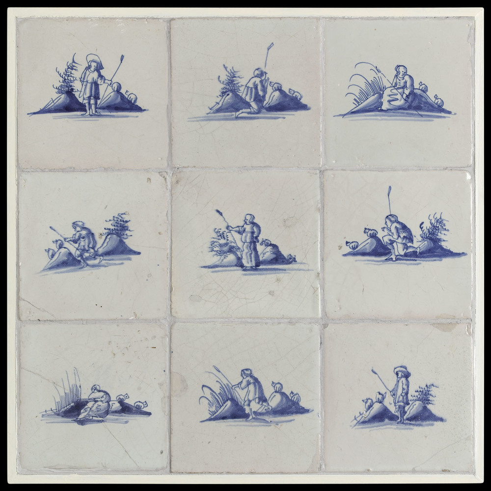 Tegelveld van keramiek, tinglazuur, voorstellende he...