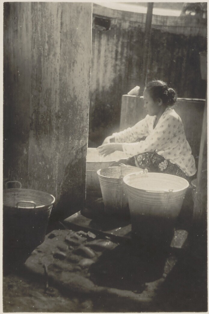 Een anonieme bediende tijdens het wassen van kleding
