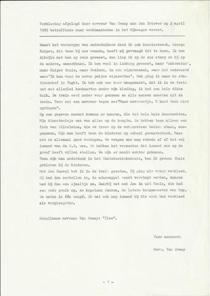 Verklaring afgelegd door mevrouw Van Swaay aan Jan D...