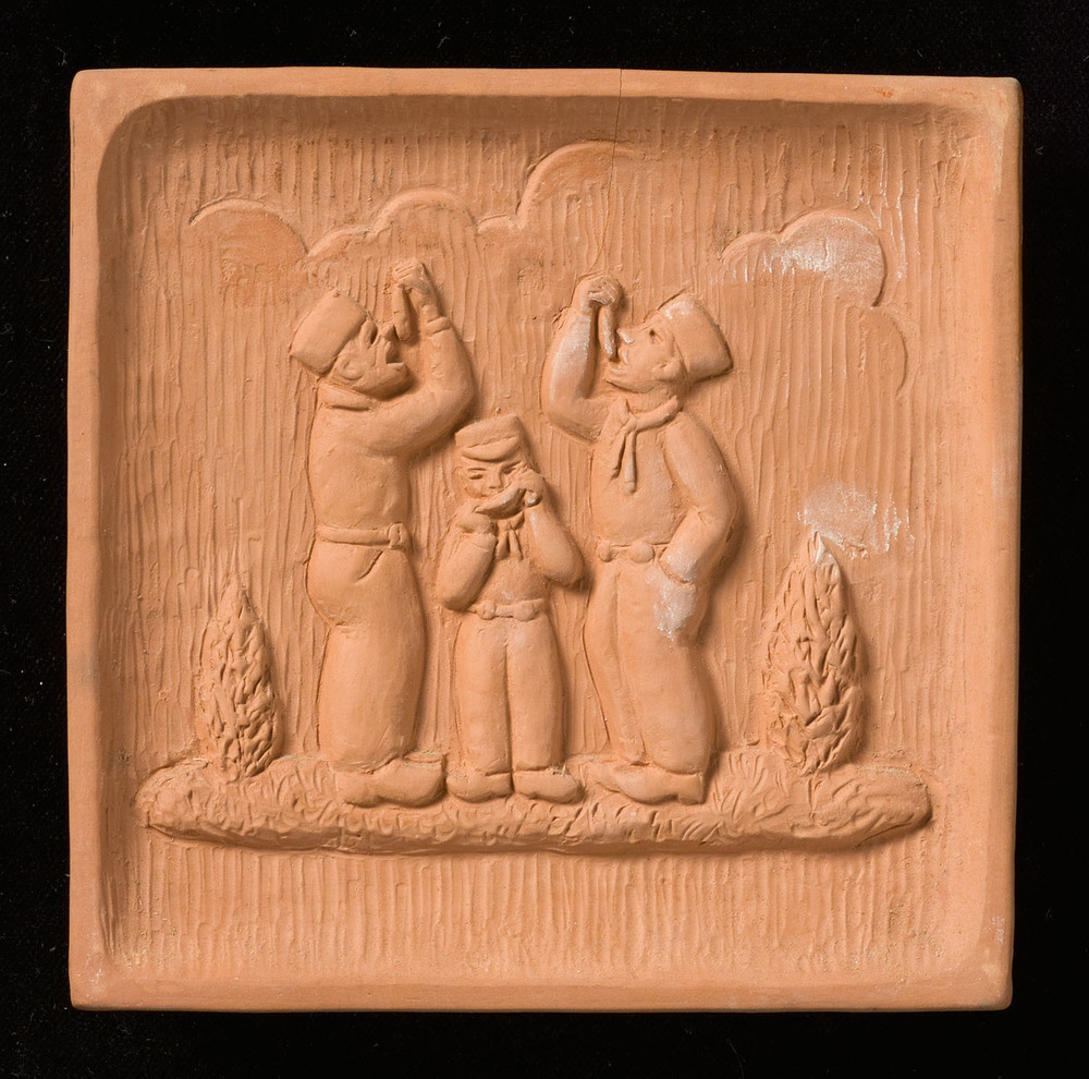 Tegel van keramiek, relief,ongeglazuurd, voorstellen...