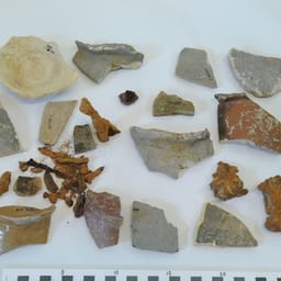Scherven grijsbakkend aardewerk steengoed en ijzerslak