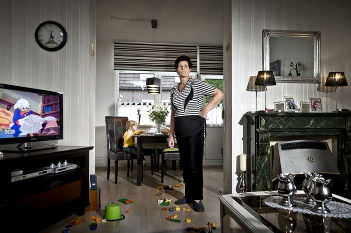 Tonny van den Berg en haar kleinzoon in haar woning ...