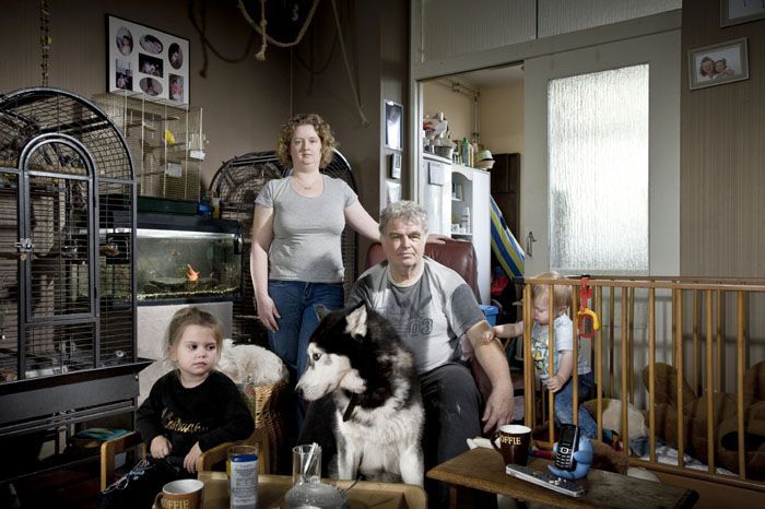 Frans en Thea met hun kleinkinderen en hond in hun w...