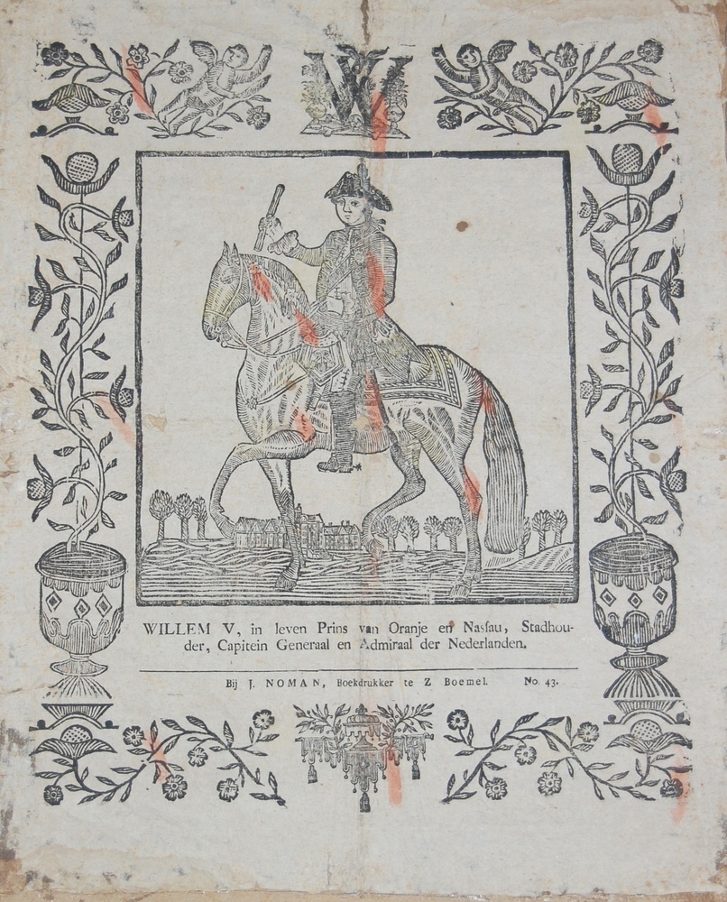 Centsprent met afbeelding van koning Willem V zitten...