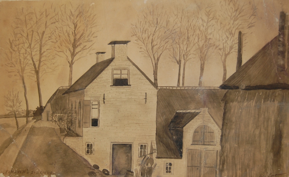 Gezicht op boerderij De Panoven, Zaltbommel. Aquarel...
