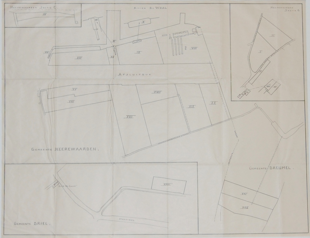 Kaart met percelering van Heerewaarden, Driel en Dre...
