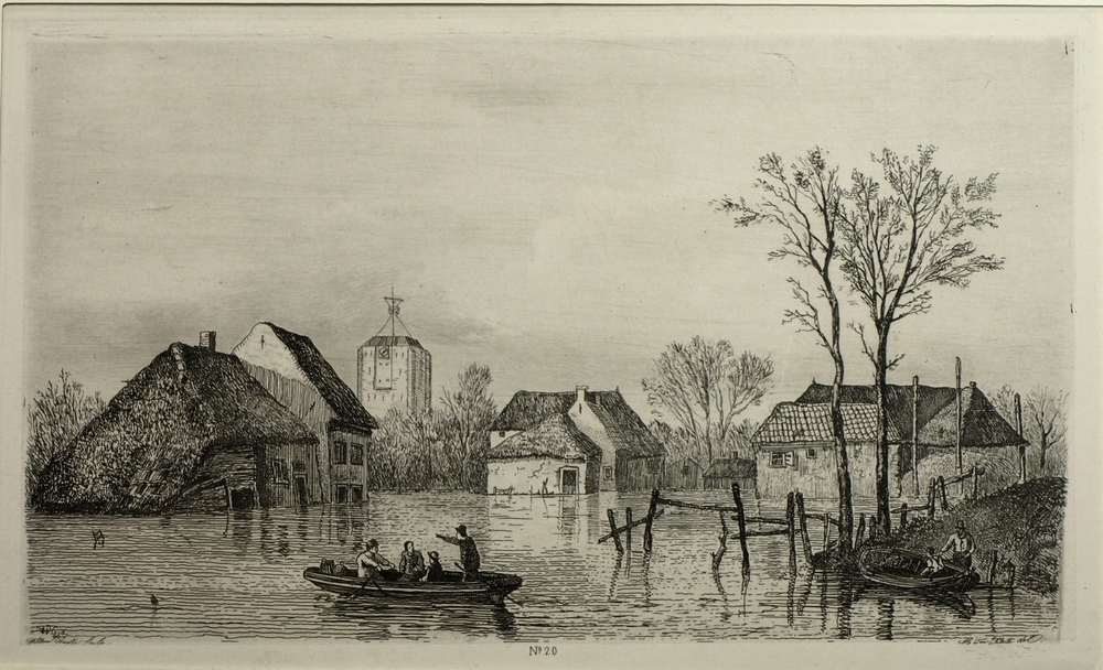 Gezicht op de overstroming van het dorp Beesd aan de...