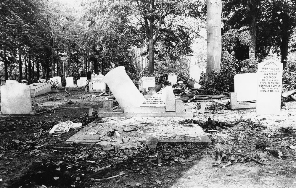 Schade na windhoos op de algemene begraafplaats aan ...