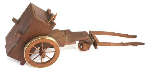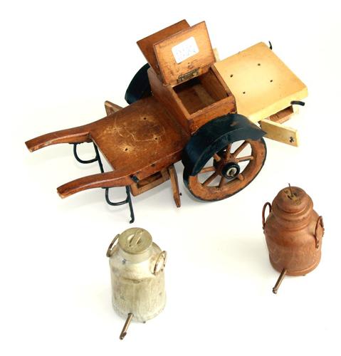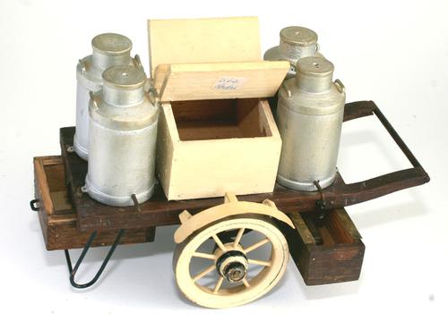Miniatuur melkkar met vier ijzeren melkbus