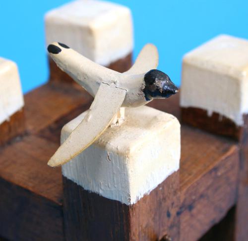 Miniatuur meerpaal met meeuw