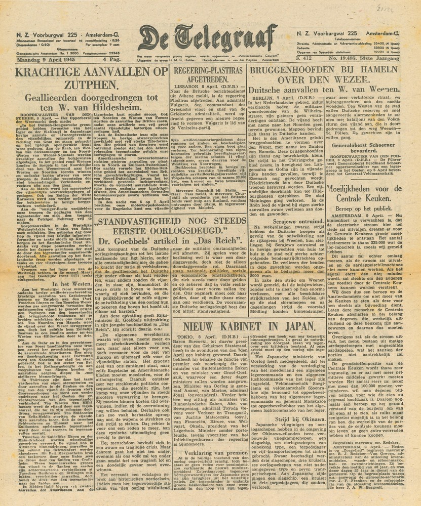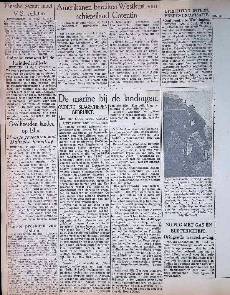 Een aantal krantenknipsels uit de oorlogsperiode 194...