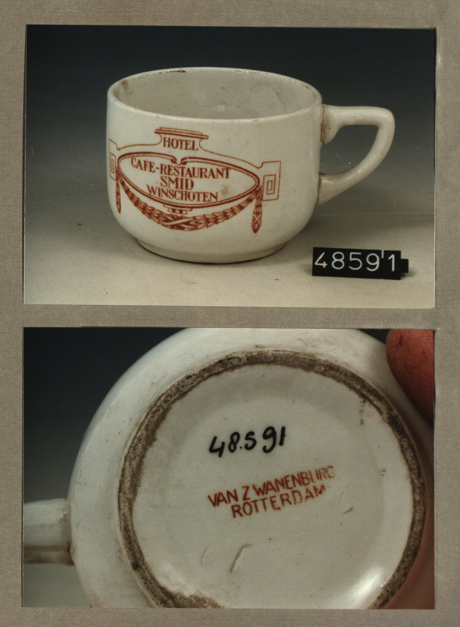 Kop met opschrift met decor Smid hotel cafe restaura...