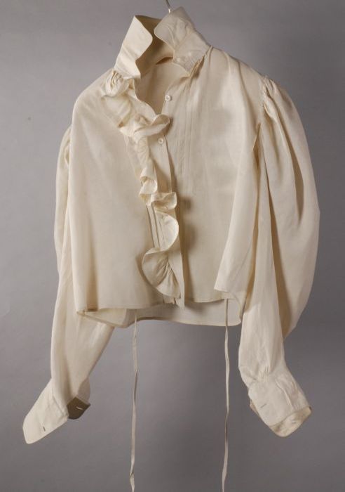 Blouse van ecrukleurig katoen, stijf boord en manche...