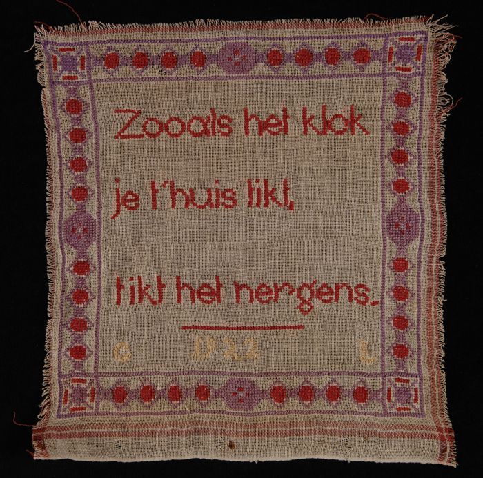 Letterlap in rood katoen in kruissteek op grof wit k...