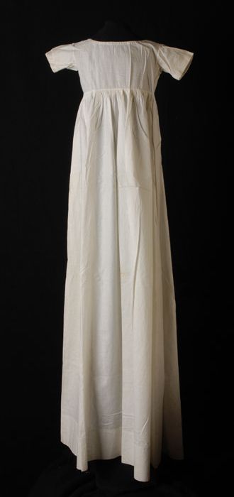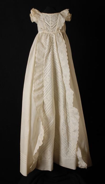 Lange wijduitlopende doopjurk van wit katoen, onderj...