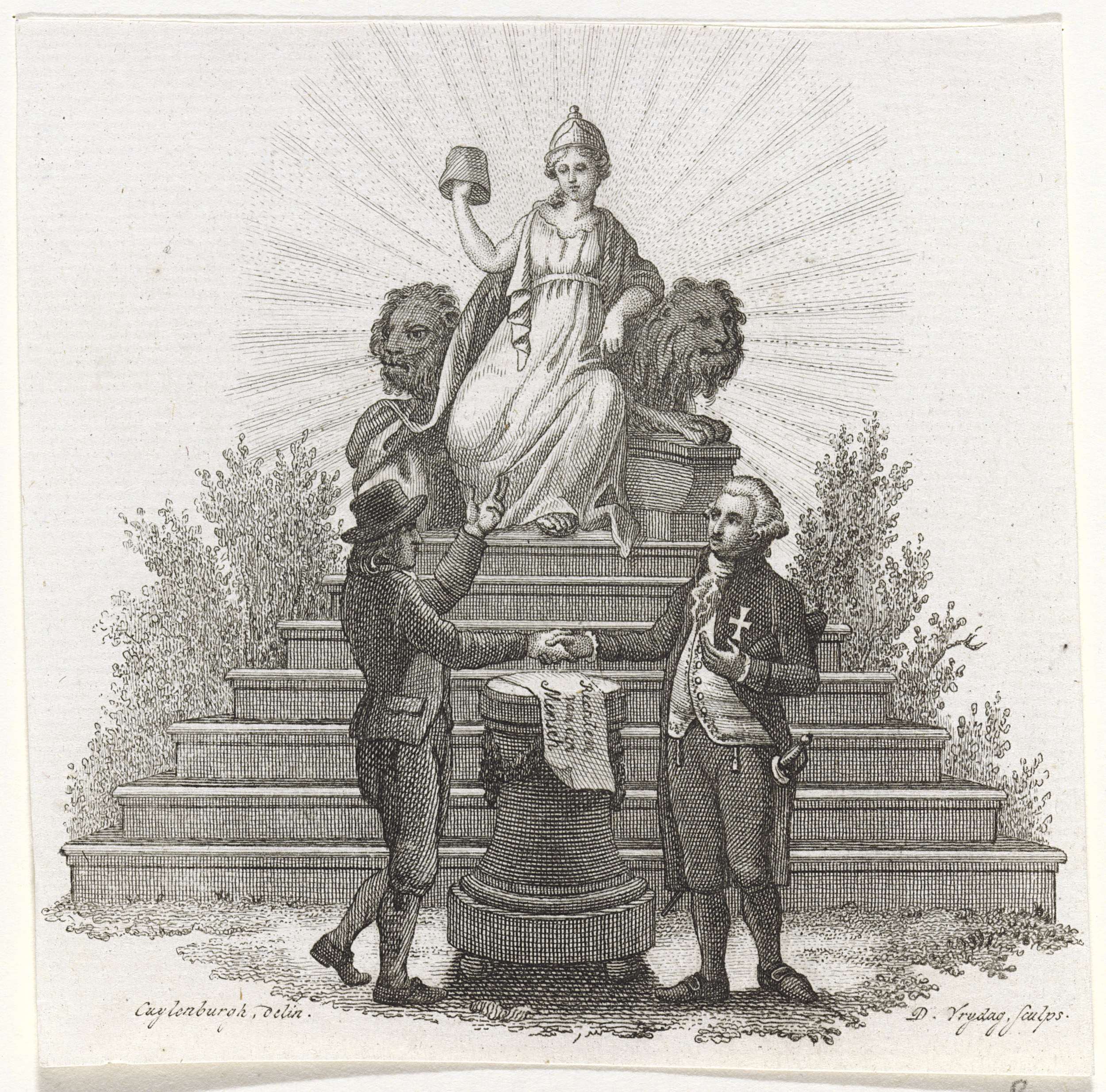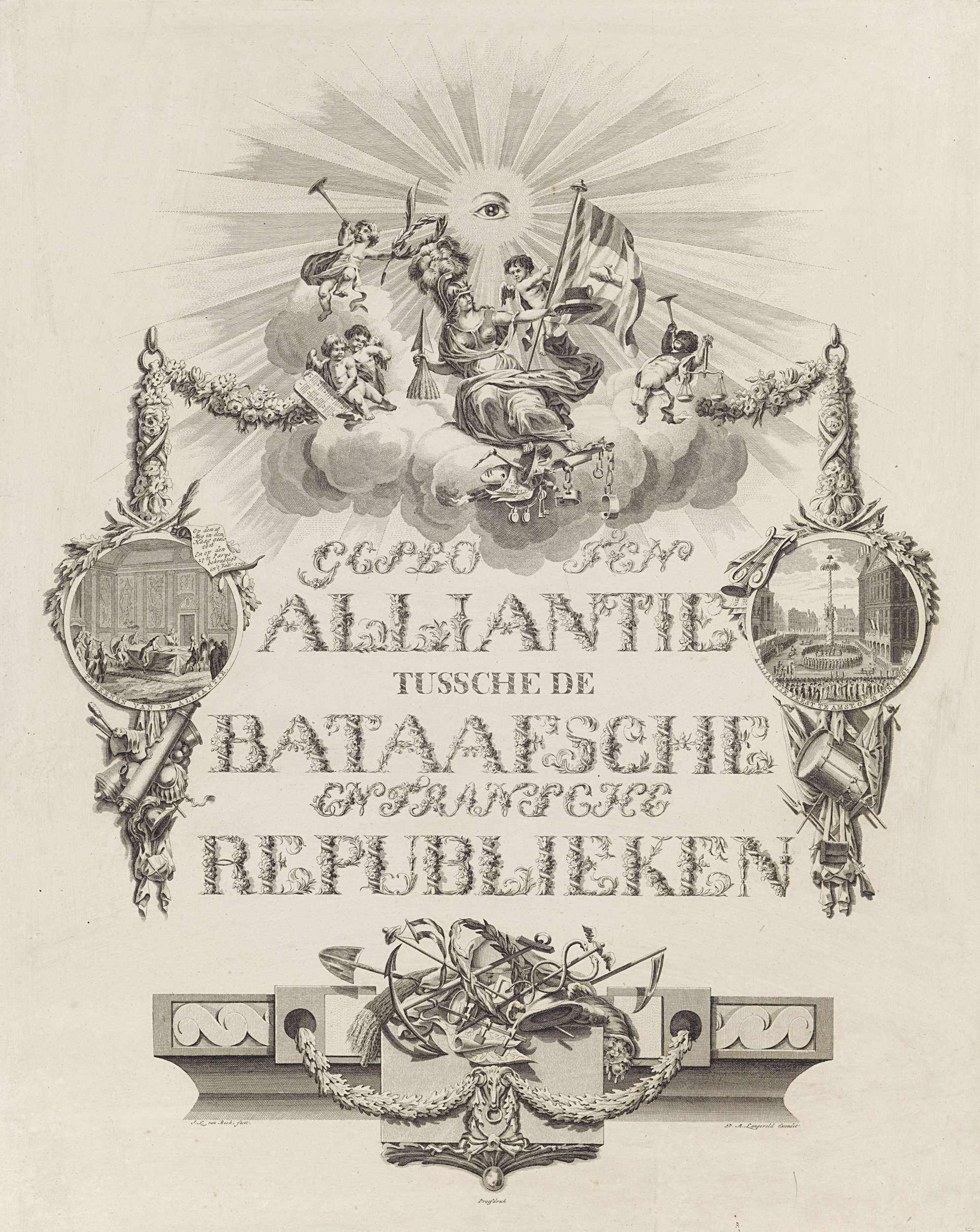 Kalligrafische allegorie op de Alliantie in 1795