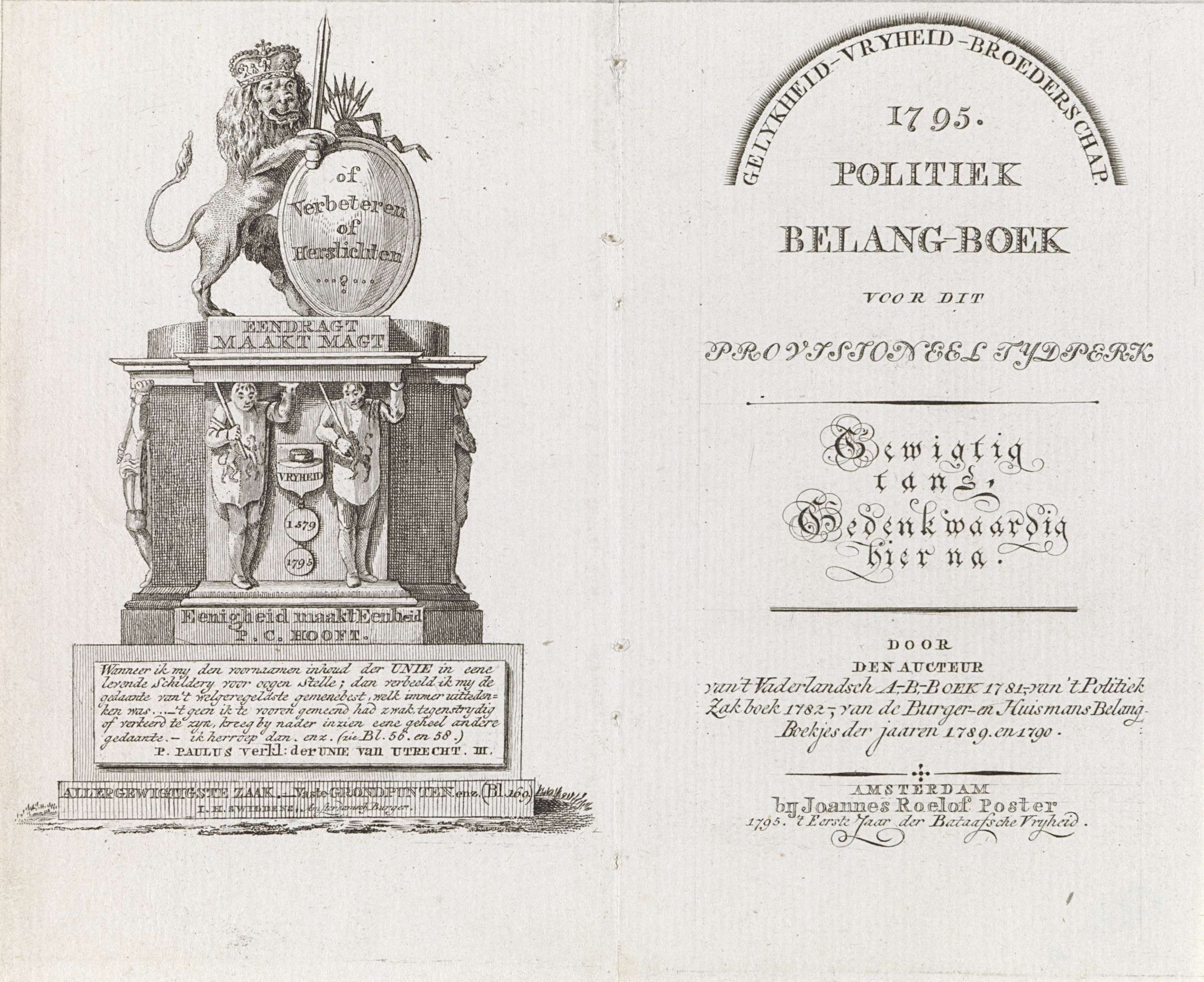 Titelpagina voor: J.H. Swildens, 1795. Politiek bela...