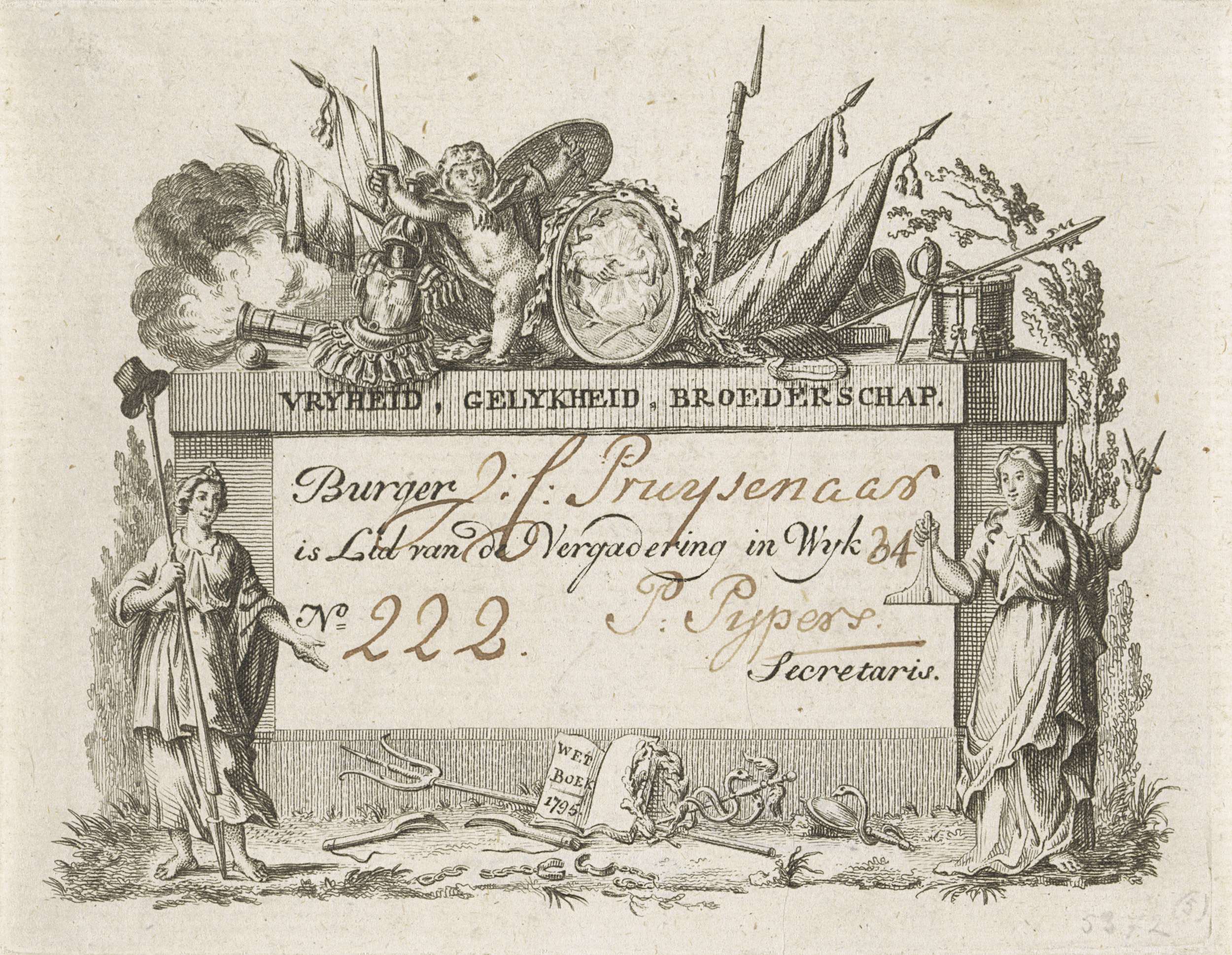 Lidmaatschapsbewijs van wijkvergadering, 1795