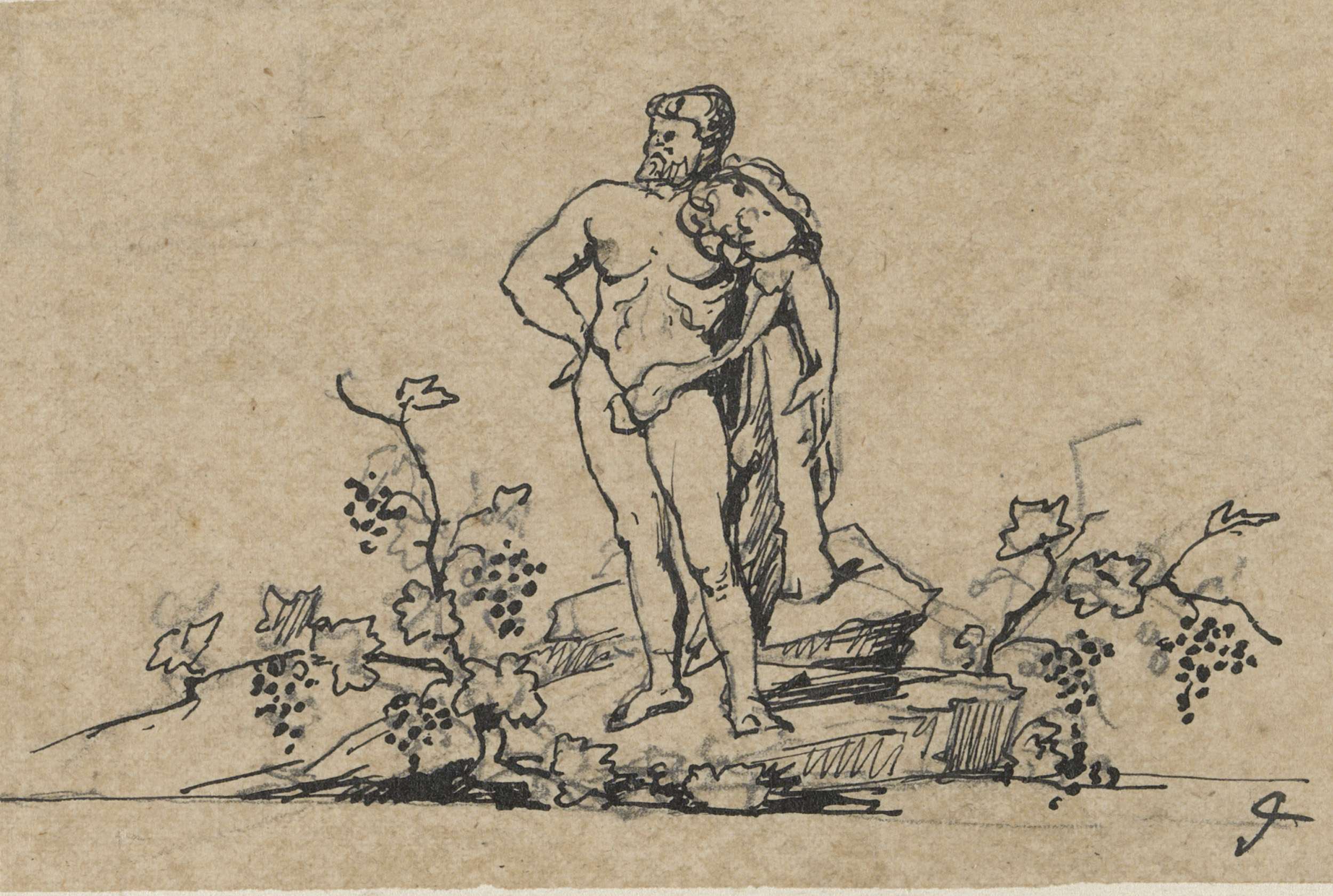 Staande man met vrouw geknield voor hem, mogelijk Pa...