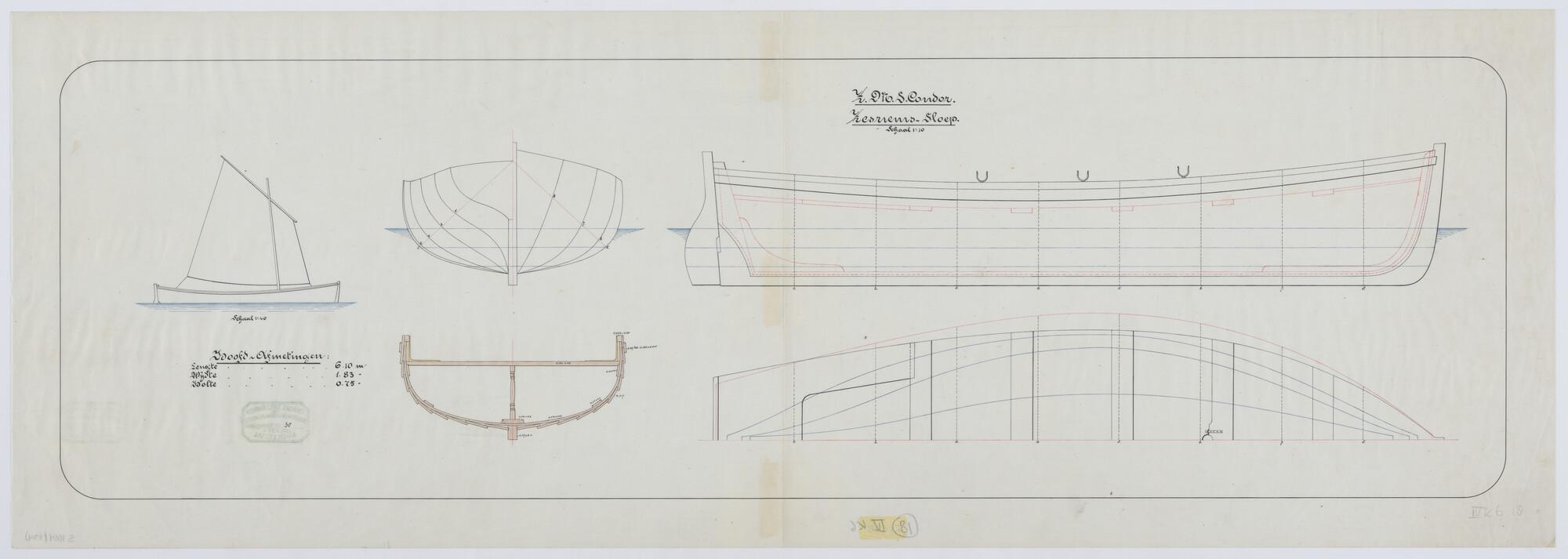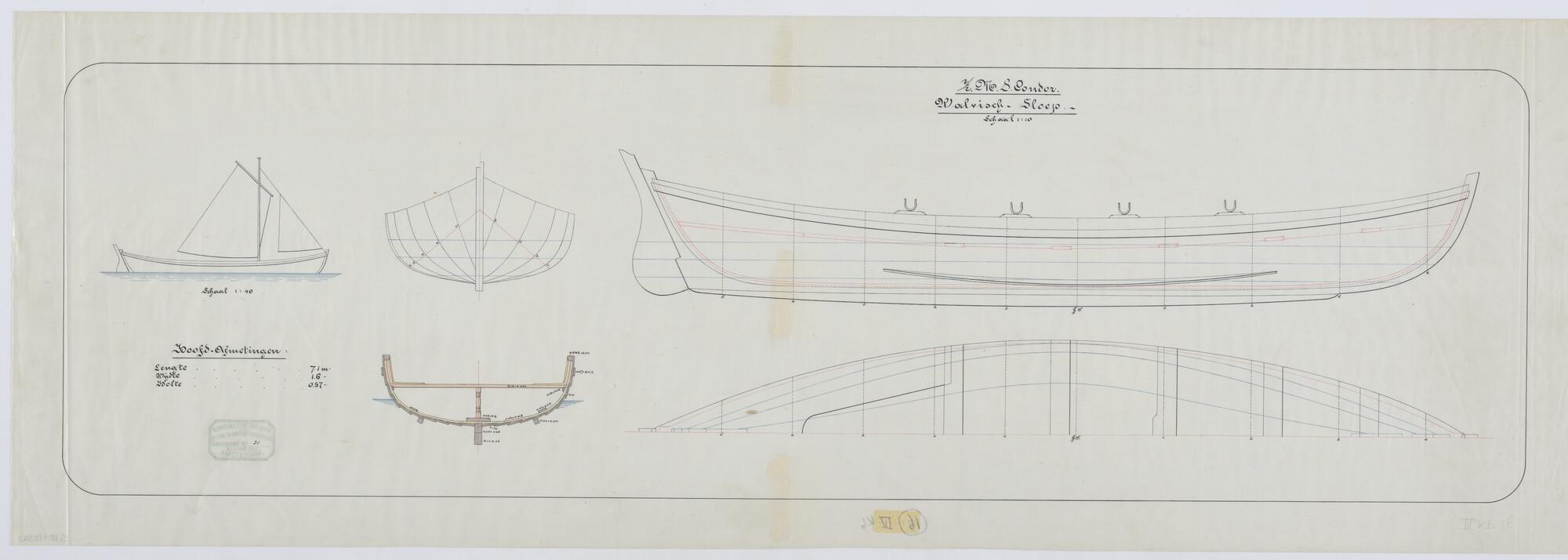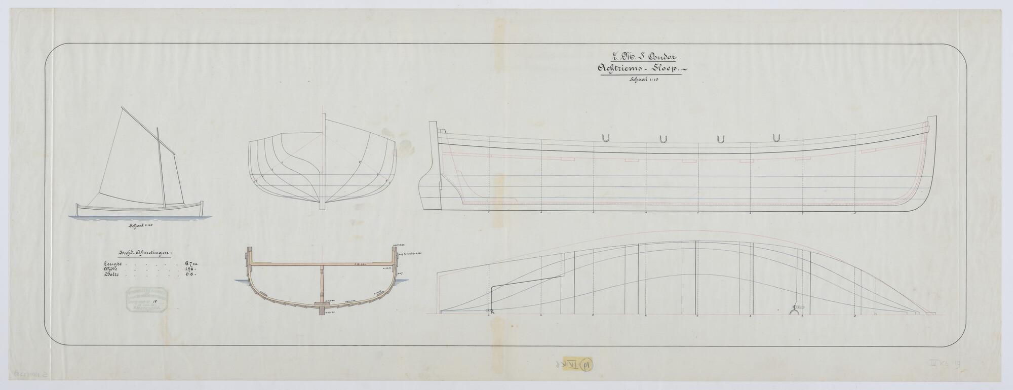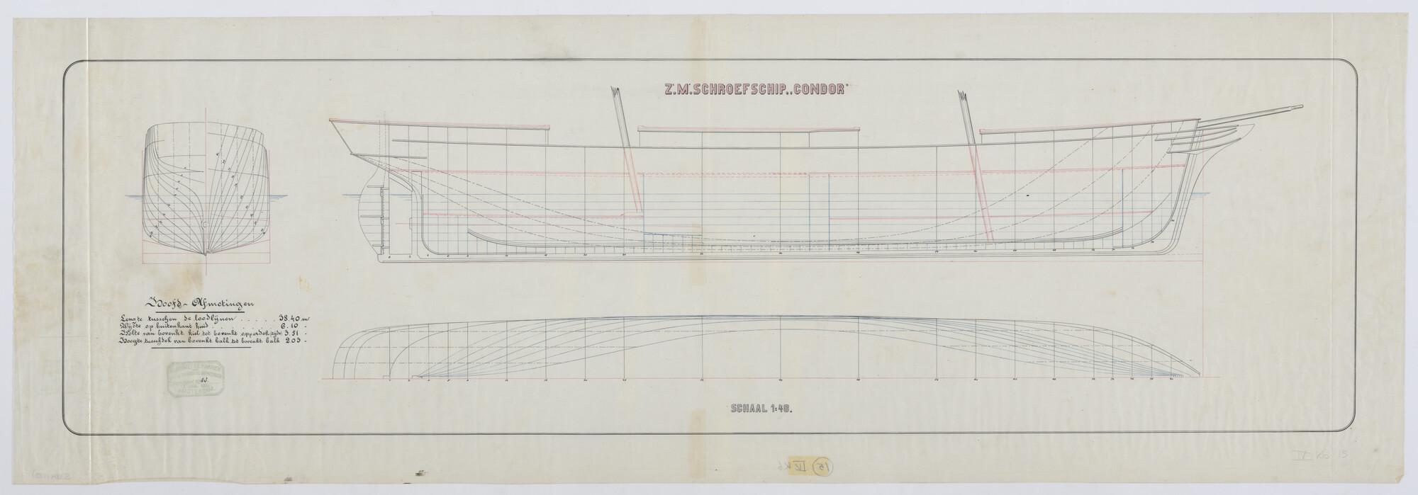 Lijnenplan van het schroefstoomschip Zr.Ms. 'Condor'...