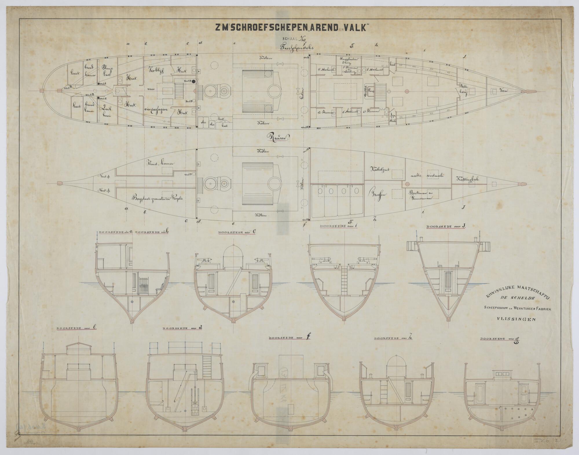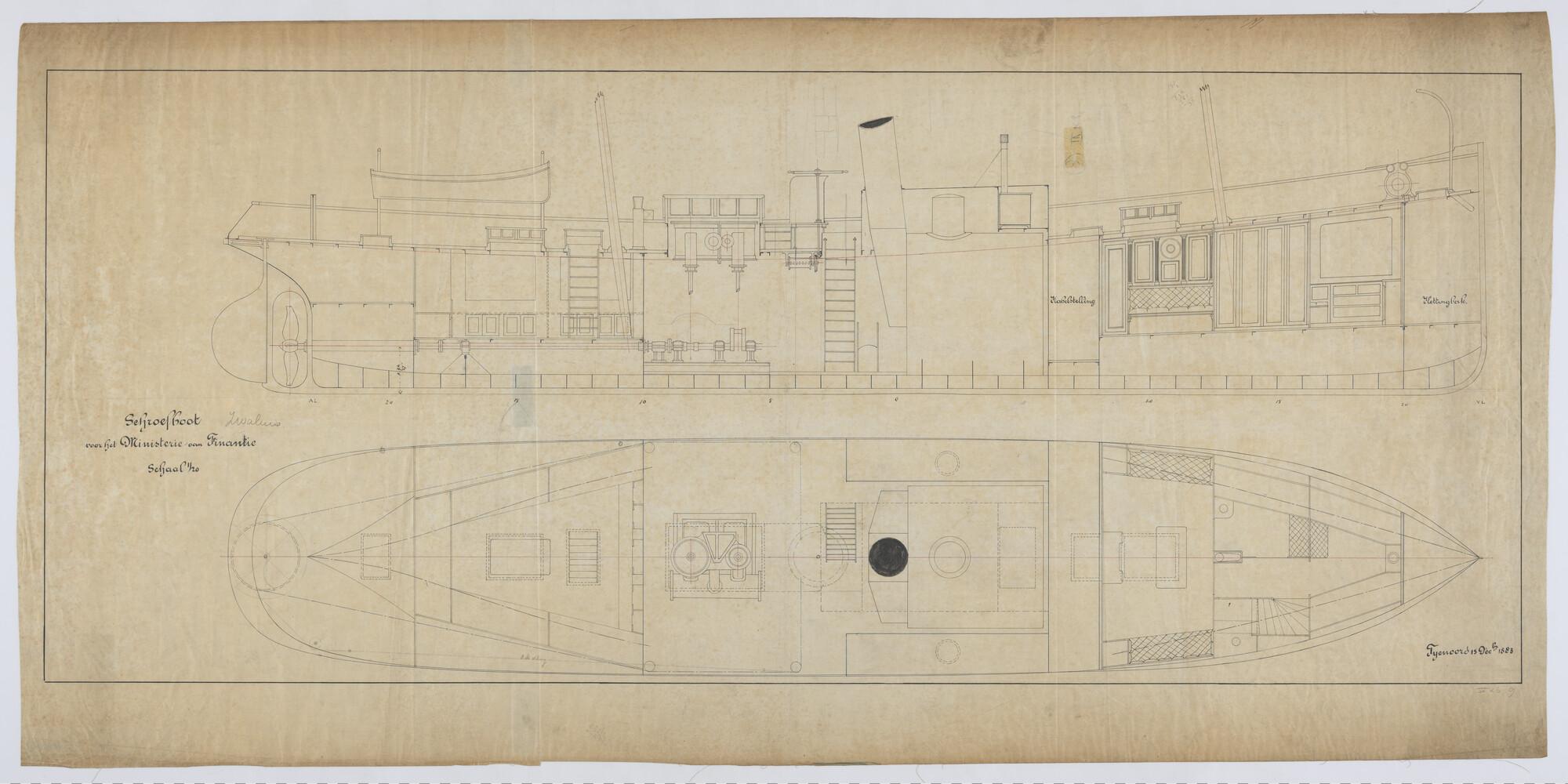 Het schroefstoomschip Zr.Ms. Zwaluw, 1884, lijnenpla...