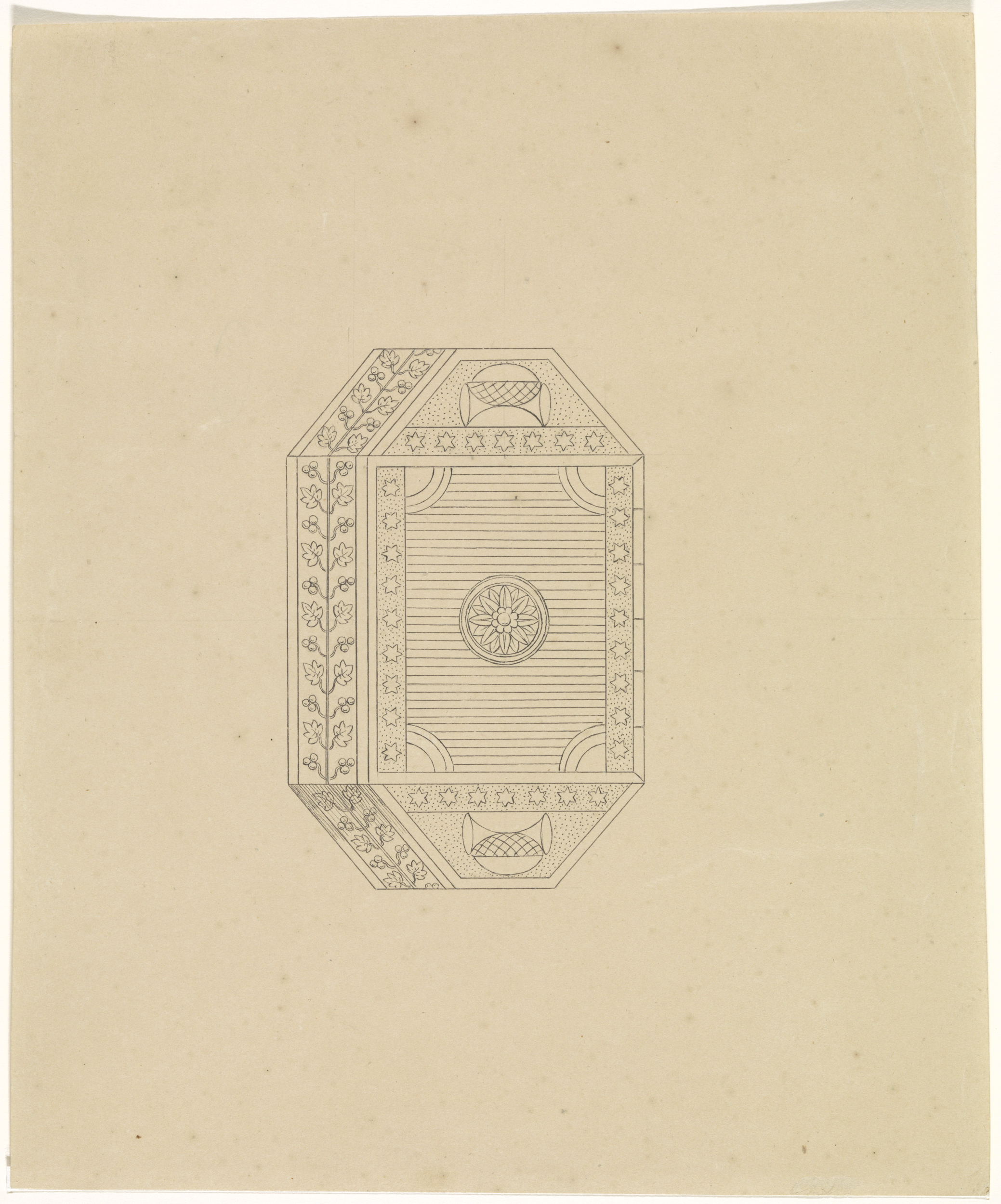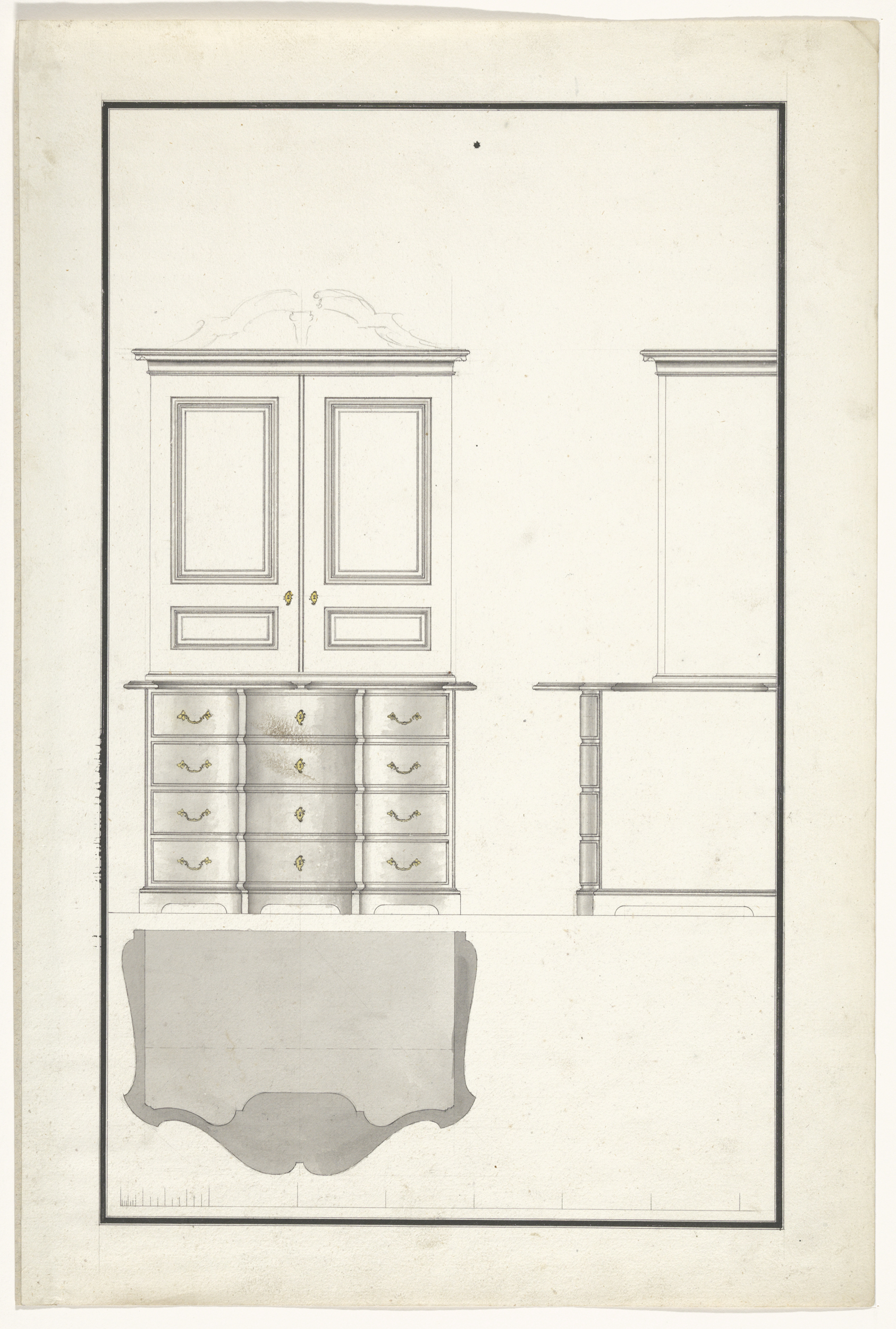 Ontwerp voor een bureau met een vitrineopstand, vers...
