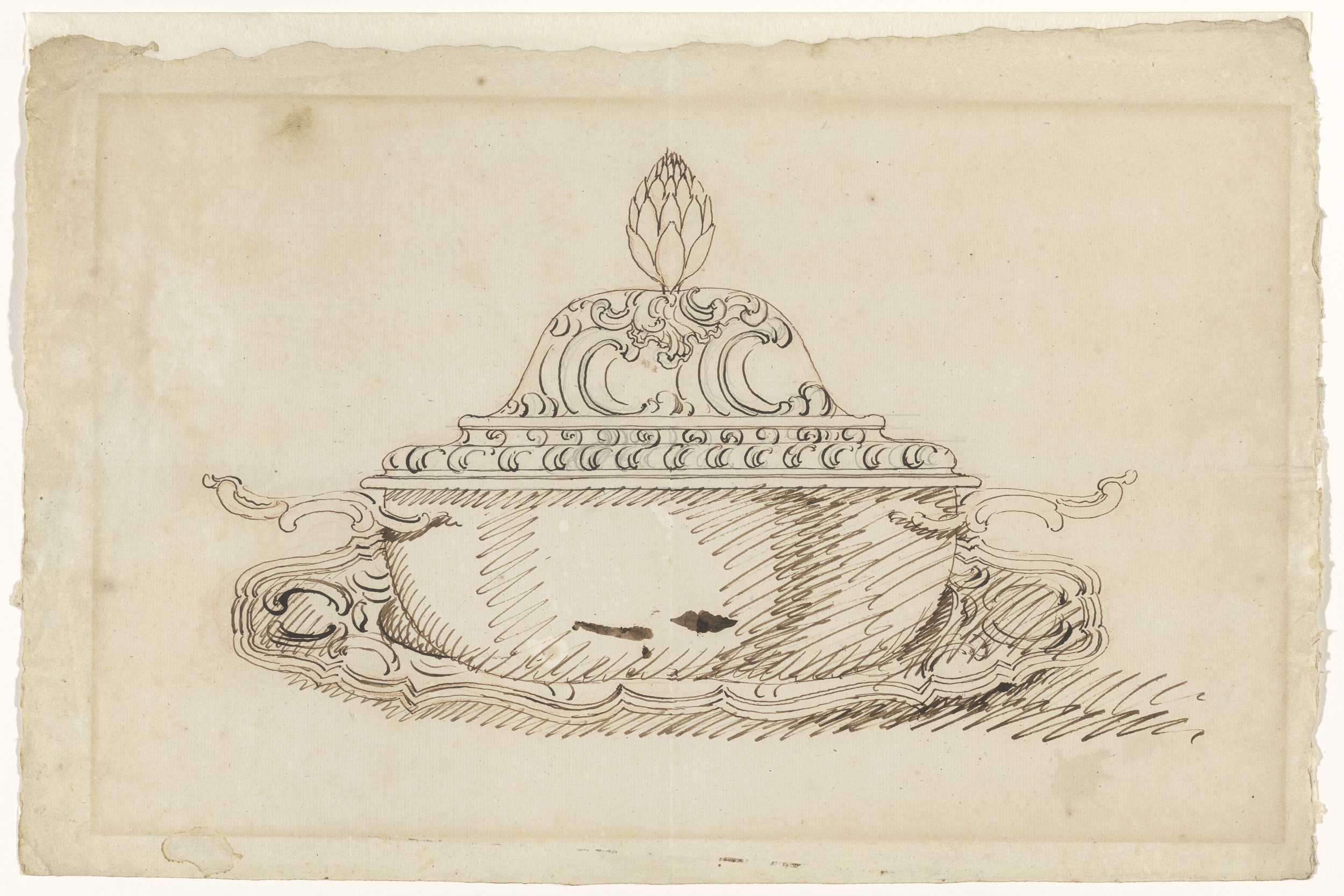 Ronde dekschaal op gecontourneerde onderschotel (écu...