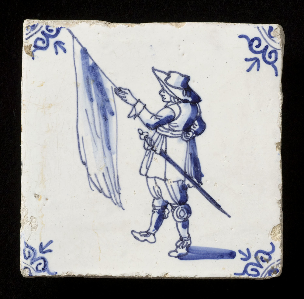 Tegel van keramiek, tinglazuur, voorstellende krijgs...