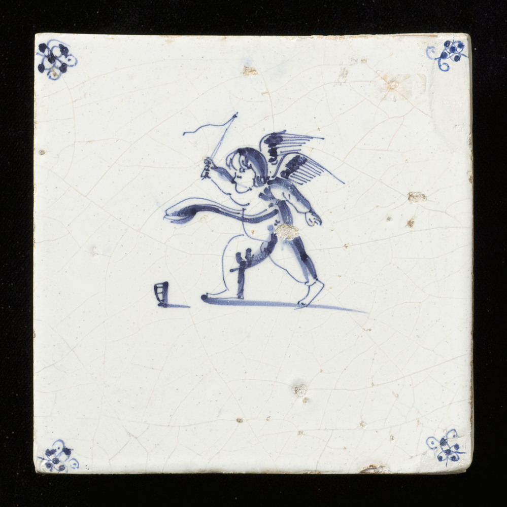 Tegel van keramiek met tinglazuur, voorstellende: De...