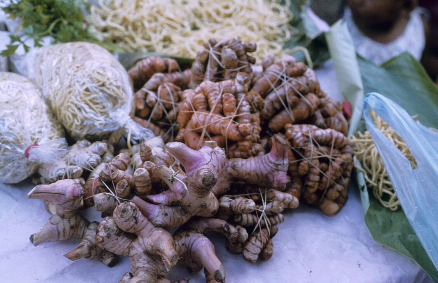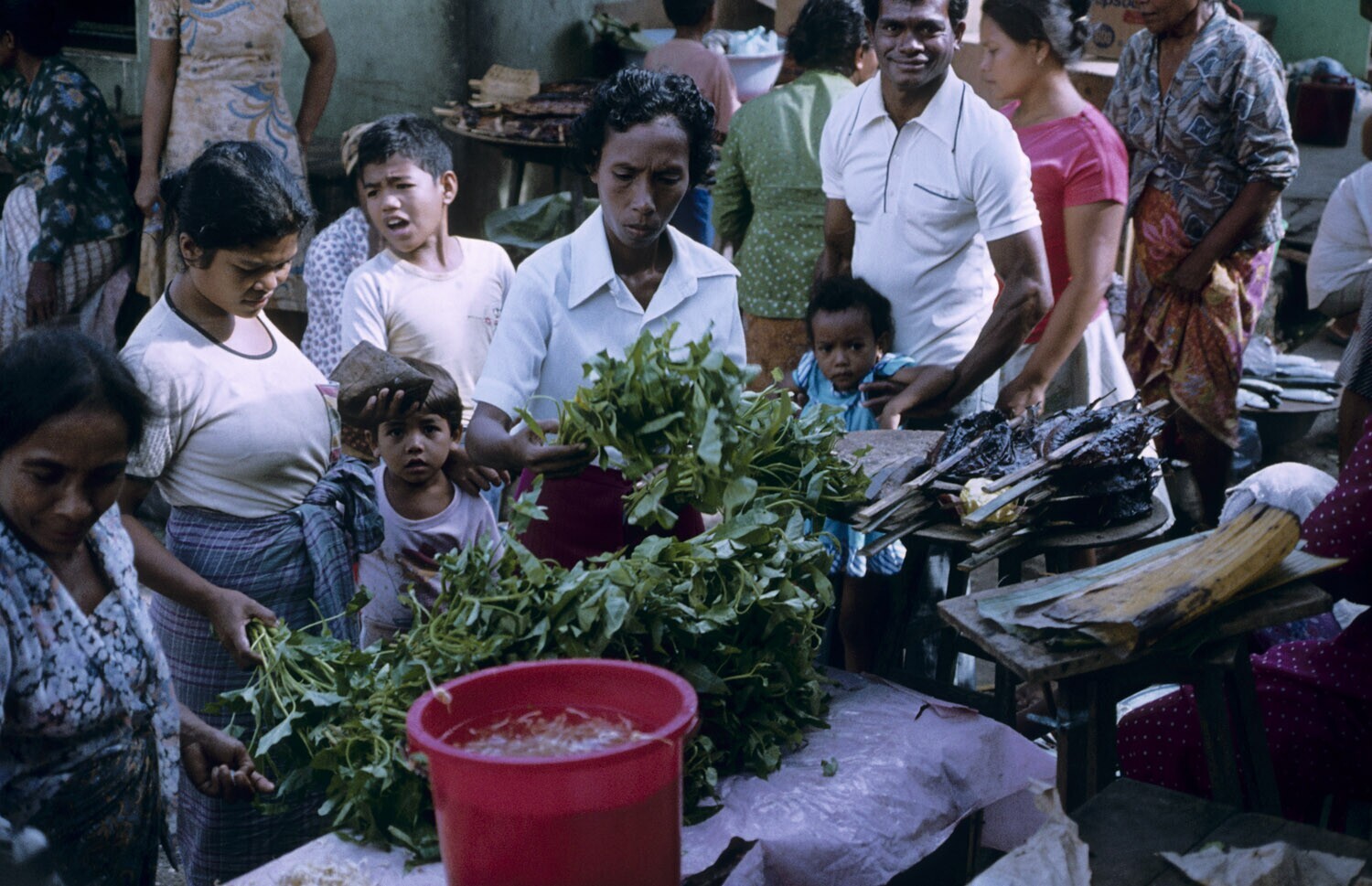 Verkoop van specerijen, op de voorgrond Laos daarach...
