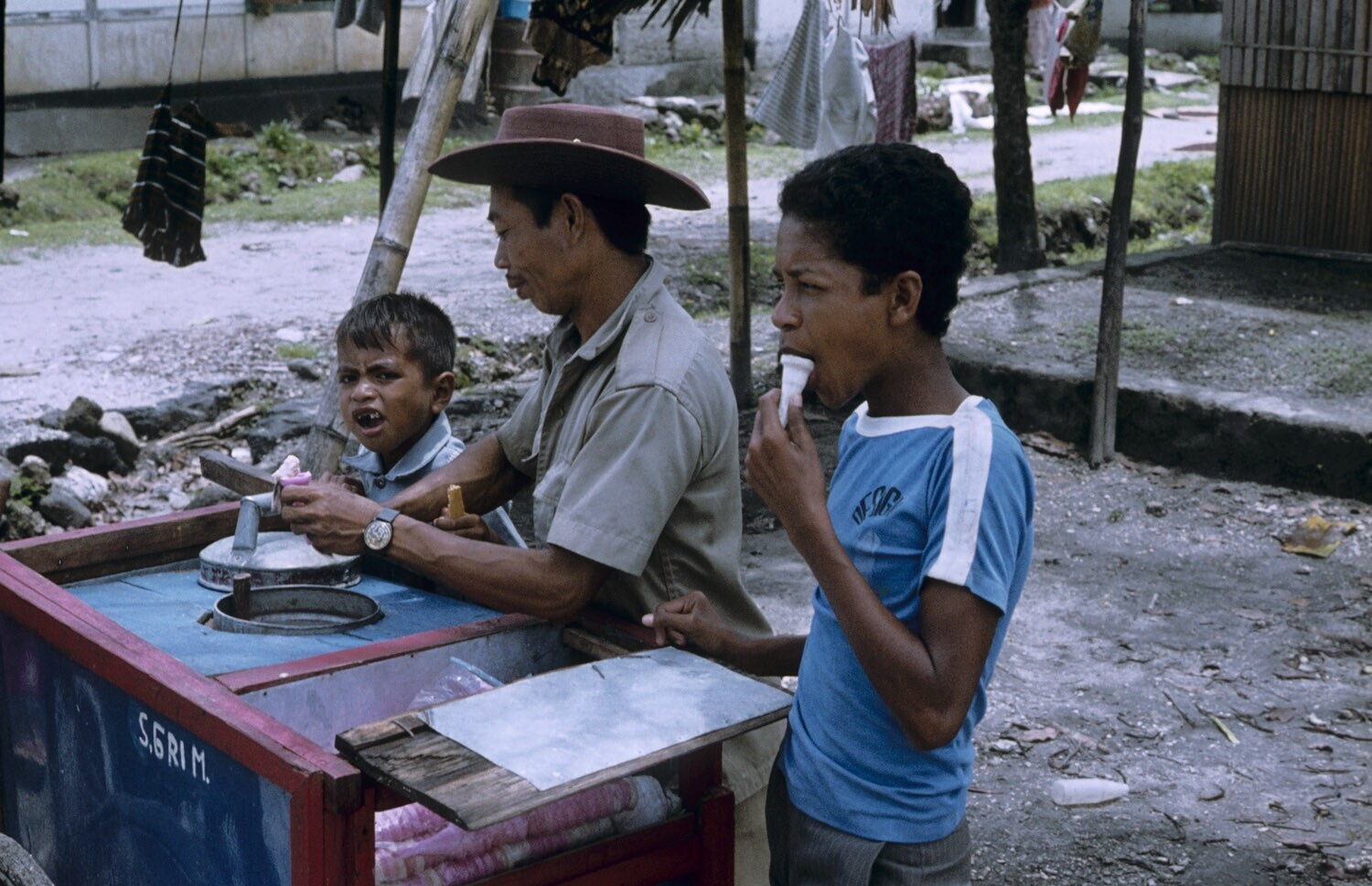 Es Grim verkoper in kampong Baroe in Tulehu op Ambon...