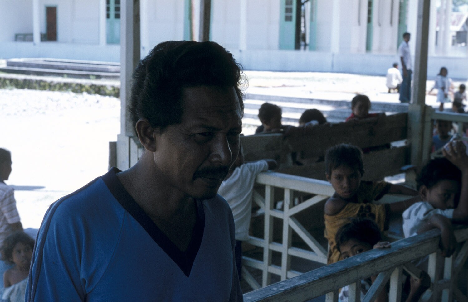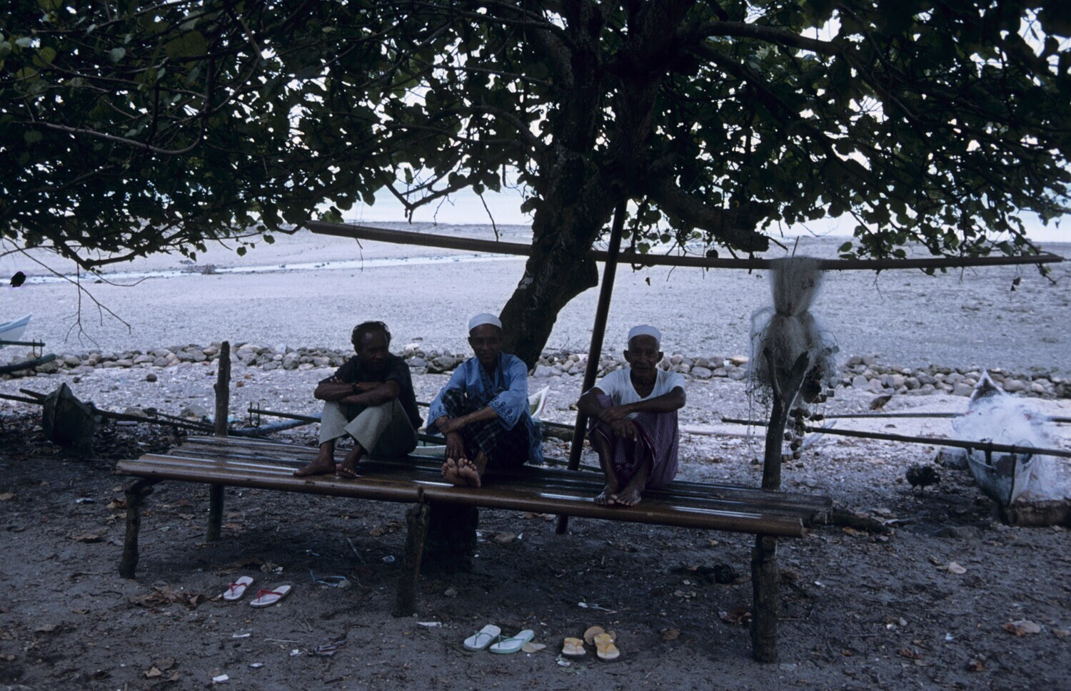 Straatbeeld met kinderen van Mamala, Ambon, Molukken.