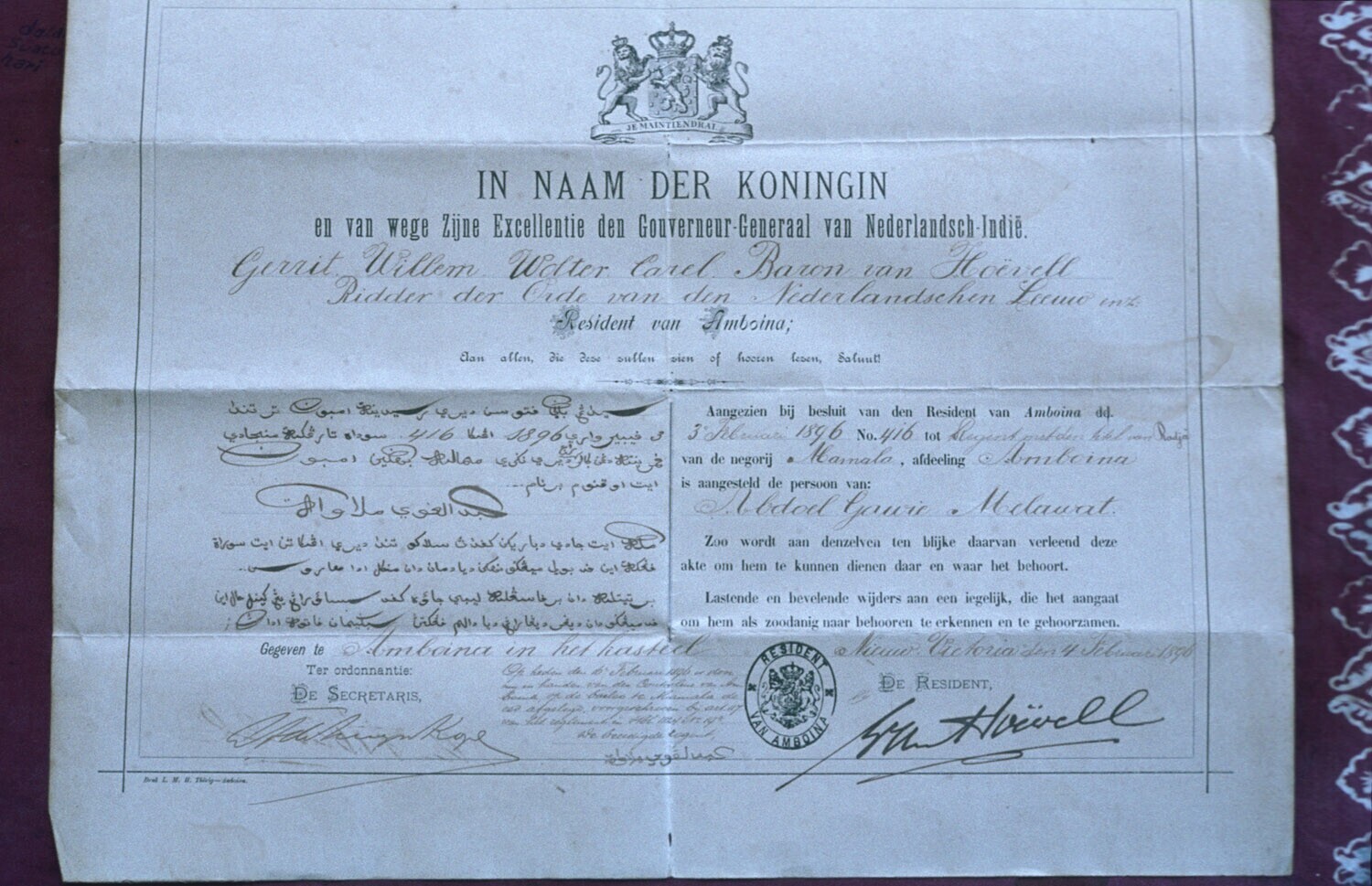 De stamboom van de bapa raja van Mamala, Ambon, Molu...