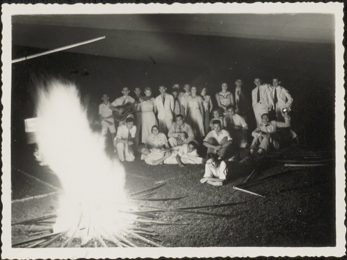 Groepsportret bij kampvuur