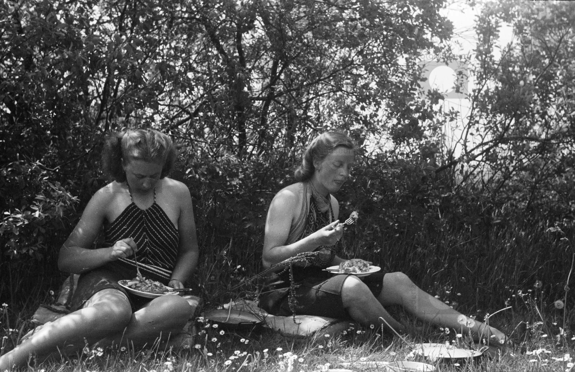 Herma en Tini liggend in de zon, vakantie op de '...