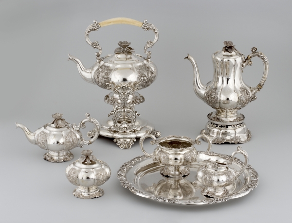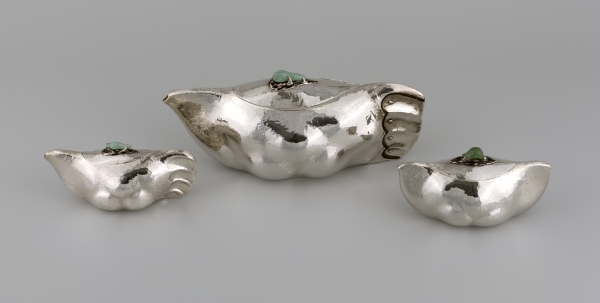 Driedelig theeservies waarvan de vorm geïnspireerd i...