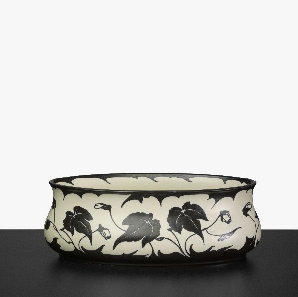 Twee kastanjevazen, versierd met blad- en bloemranke...