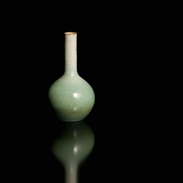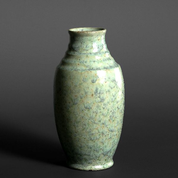 Groenblauwe vaas met uit ribbels opgebouwde hals