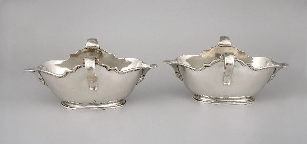 Twee sauskommen met twee schenktuiten en dwars gepla...