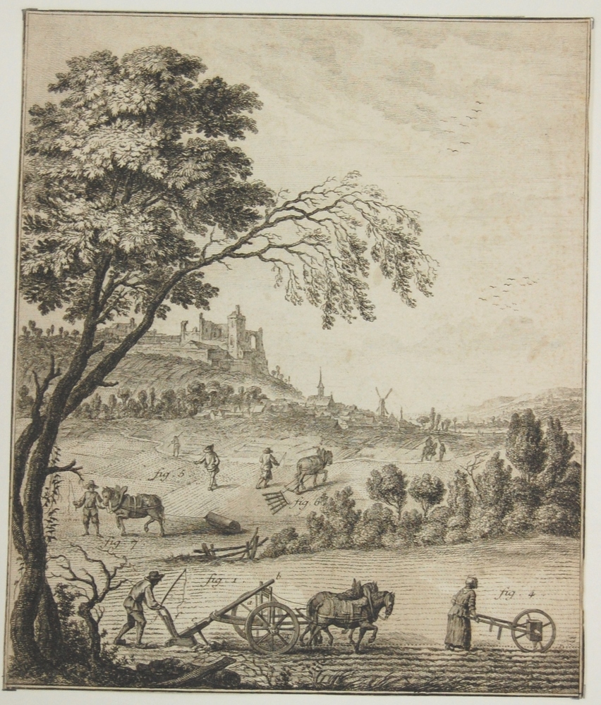 Gezicht op taferelen in de landbouw zoals zaaien, pl...