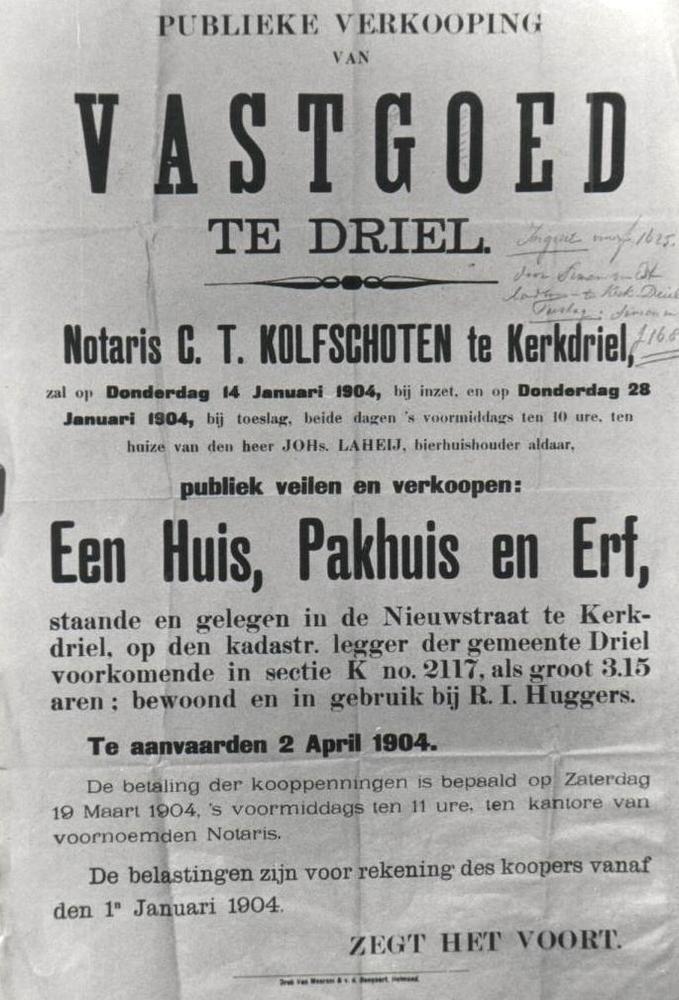 Publicatie, verkoop vastgoed te Driel door notaris K...