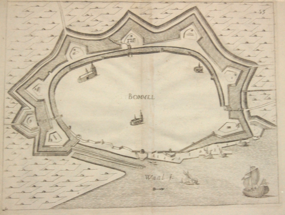 vestingwerken en singels Zaltbommel en de rivier de ...