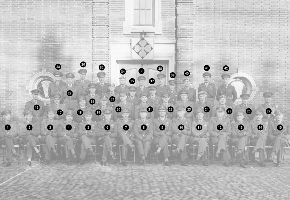 Groepsfoto staf 4 Divisie voor het stafgebouw op de ...