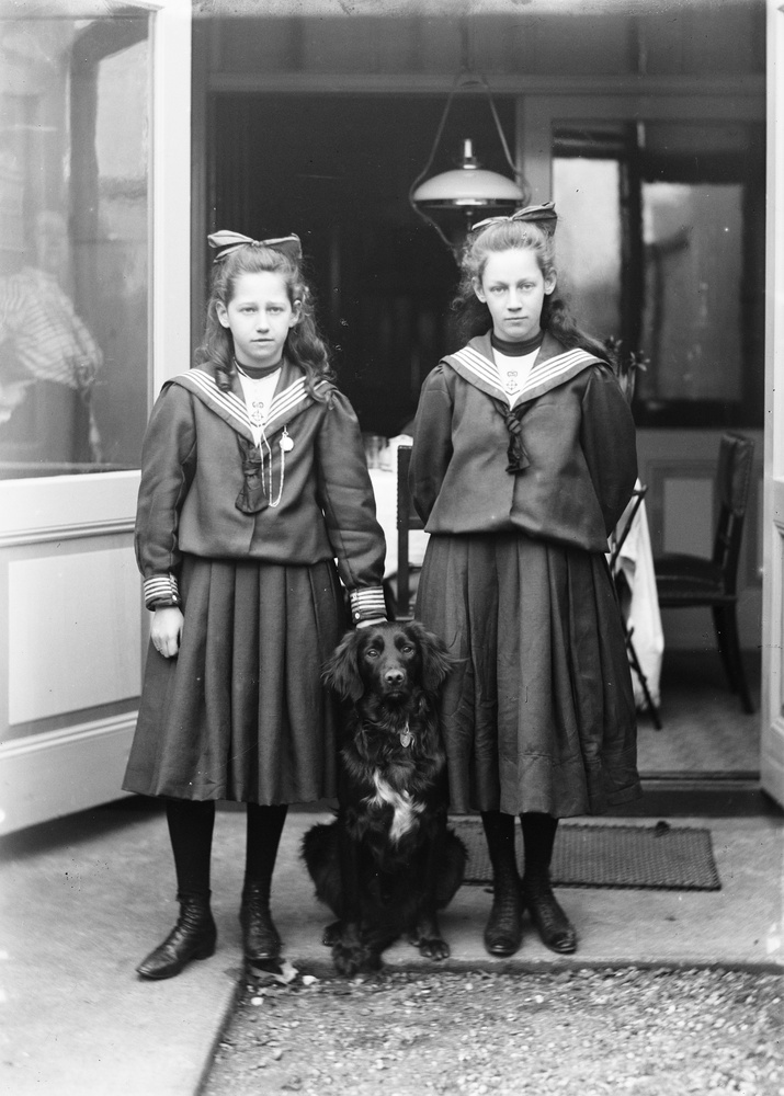 Portret ten voeten uit van twee meisjes met een hond