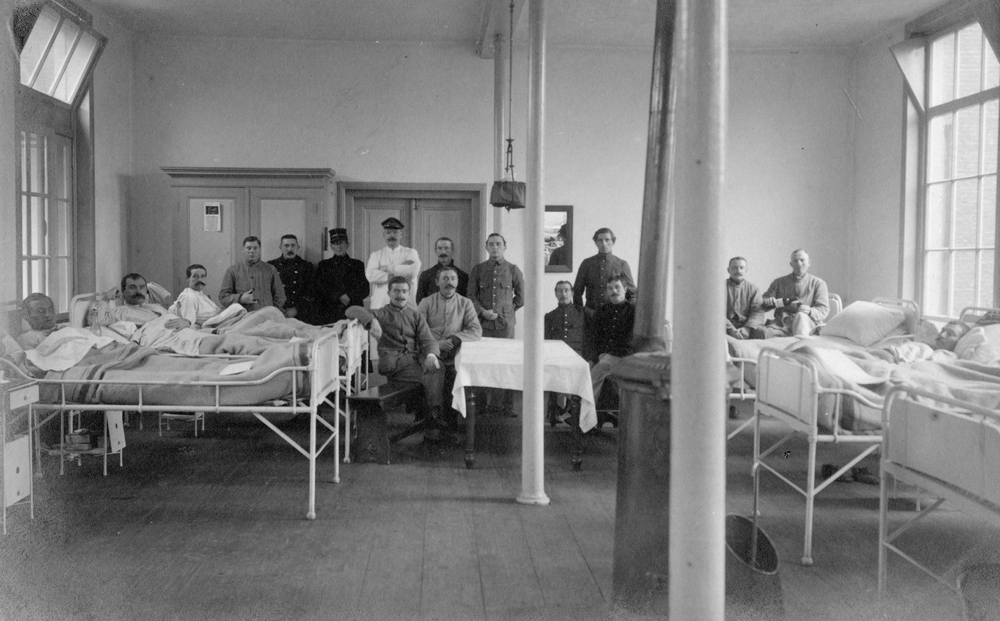 Prentbriefkaart voorstellende de ziekenzaal in het I...