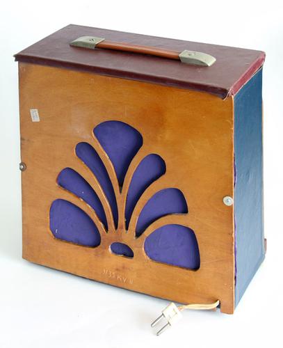 Luidspreker van triplex met rood en bruin kunstleer ...