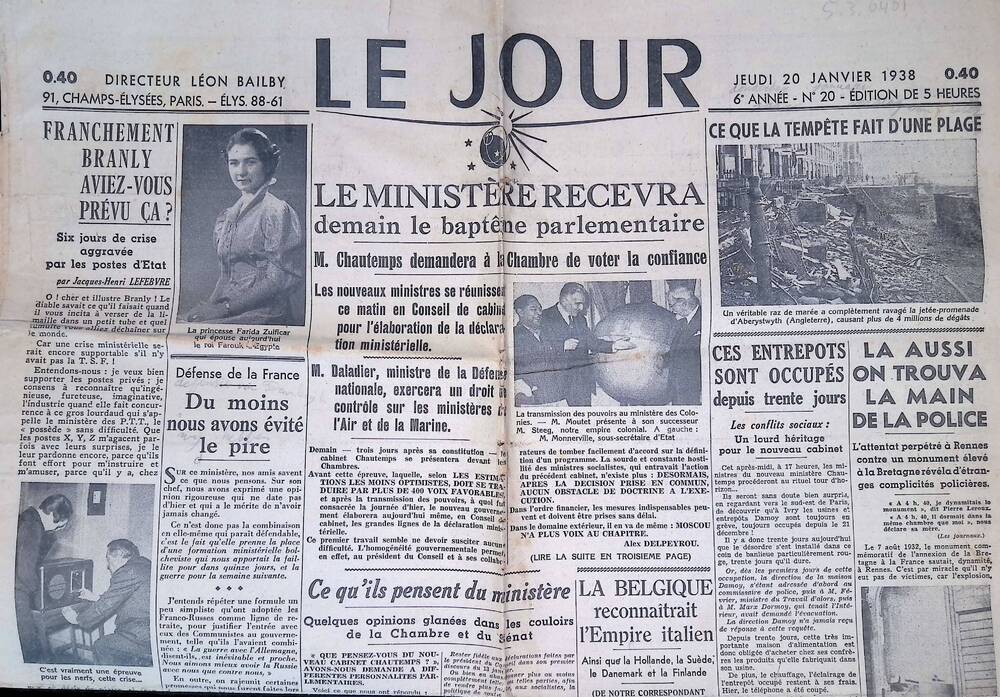 Le Jour, 6e Annee, no 20, jeudi 20 Janvier 1938