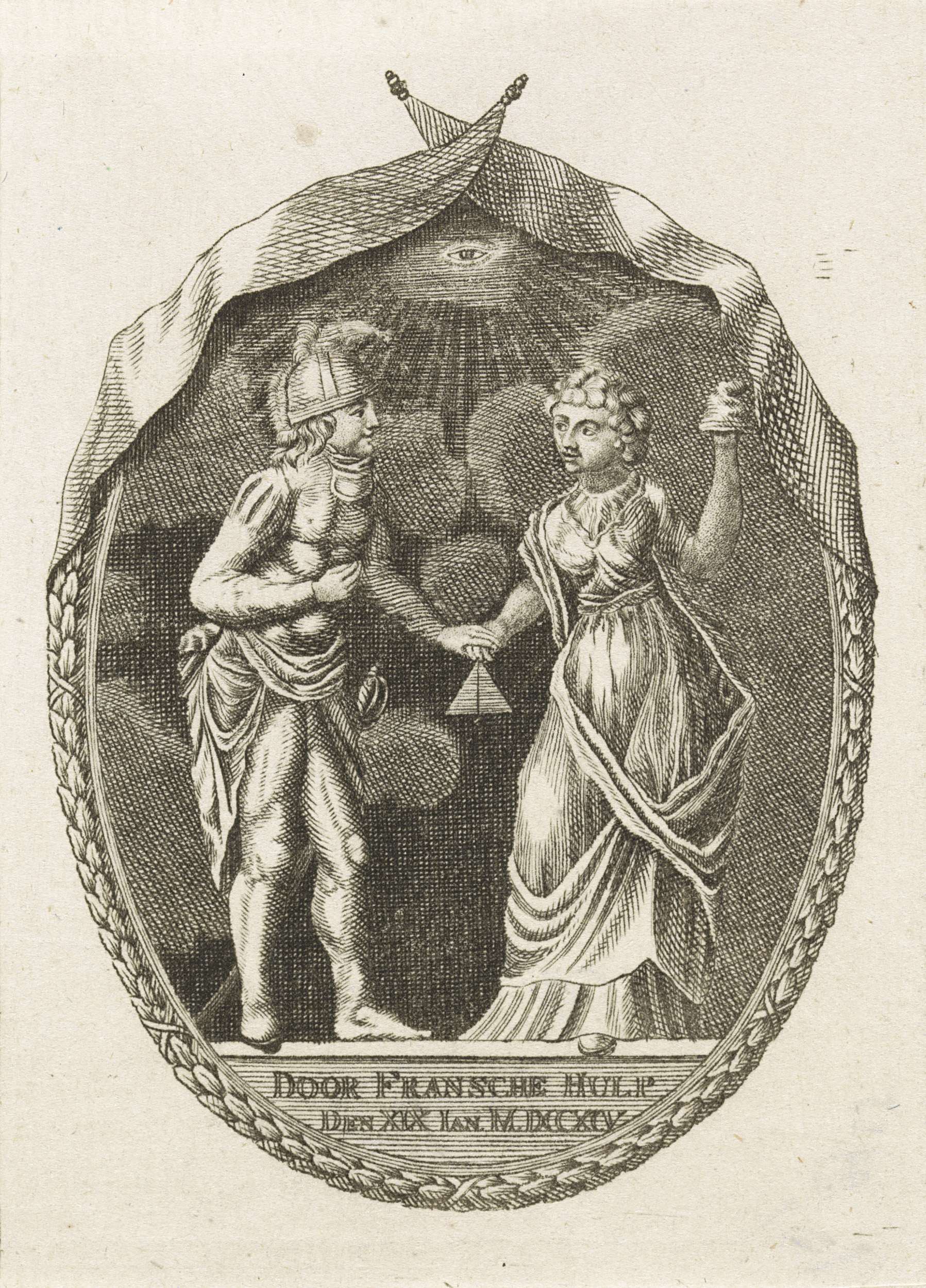 Schild met de Franse hulp aan de Republiek, op de Vr...