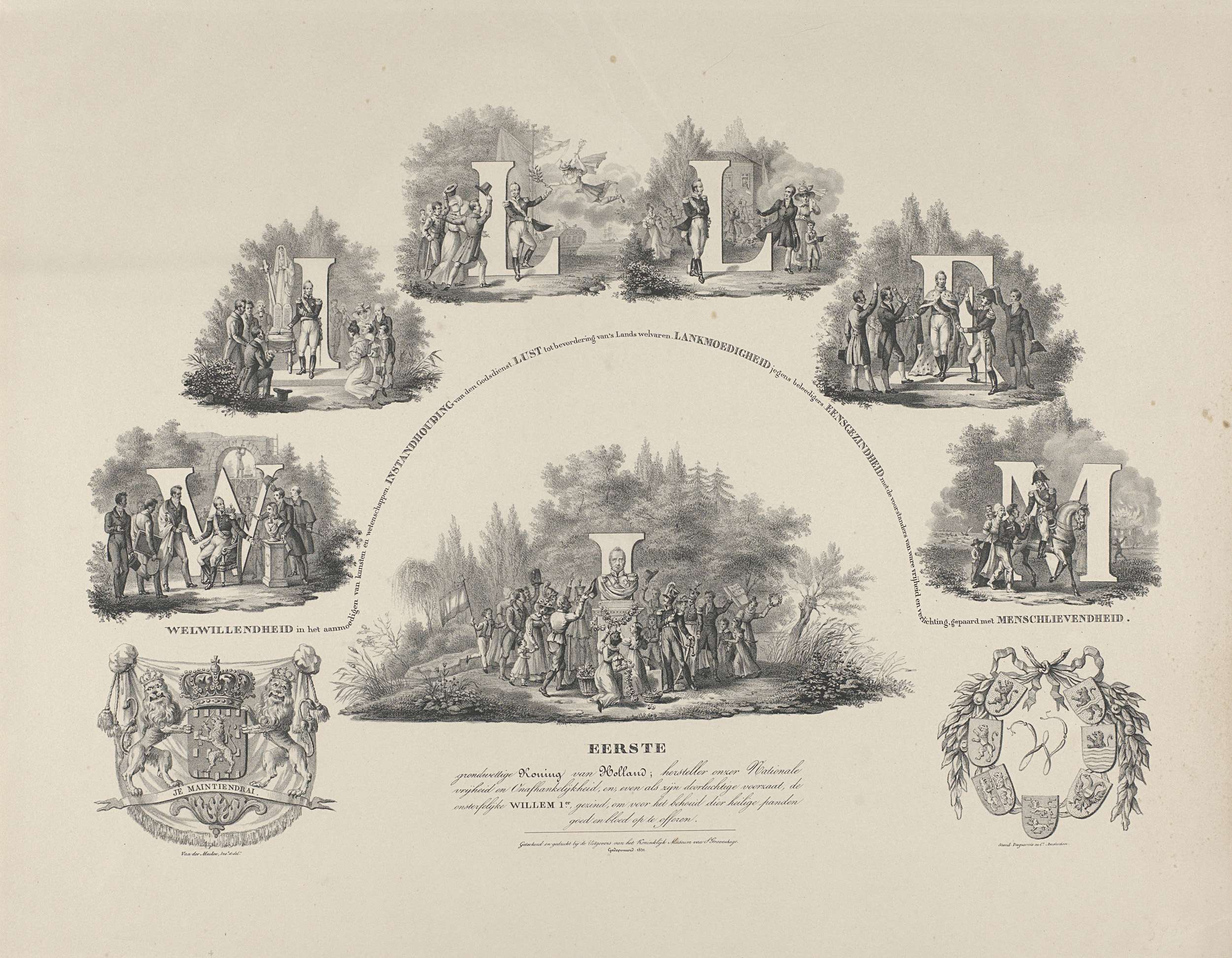 Allegorie op de deugden van koning Willem I, 1831