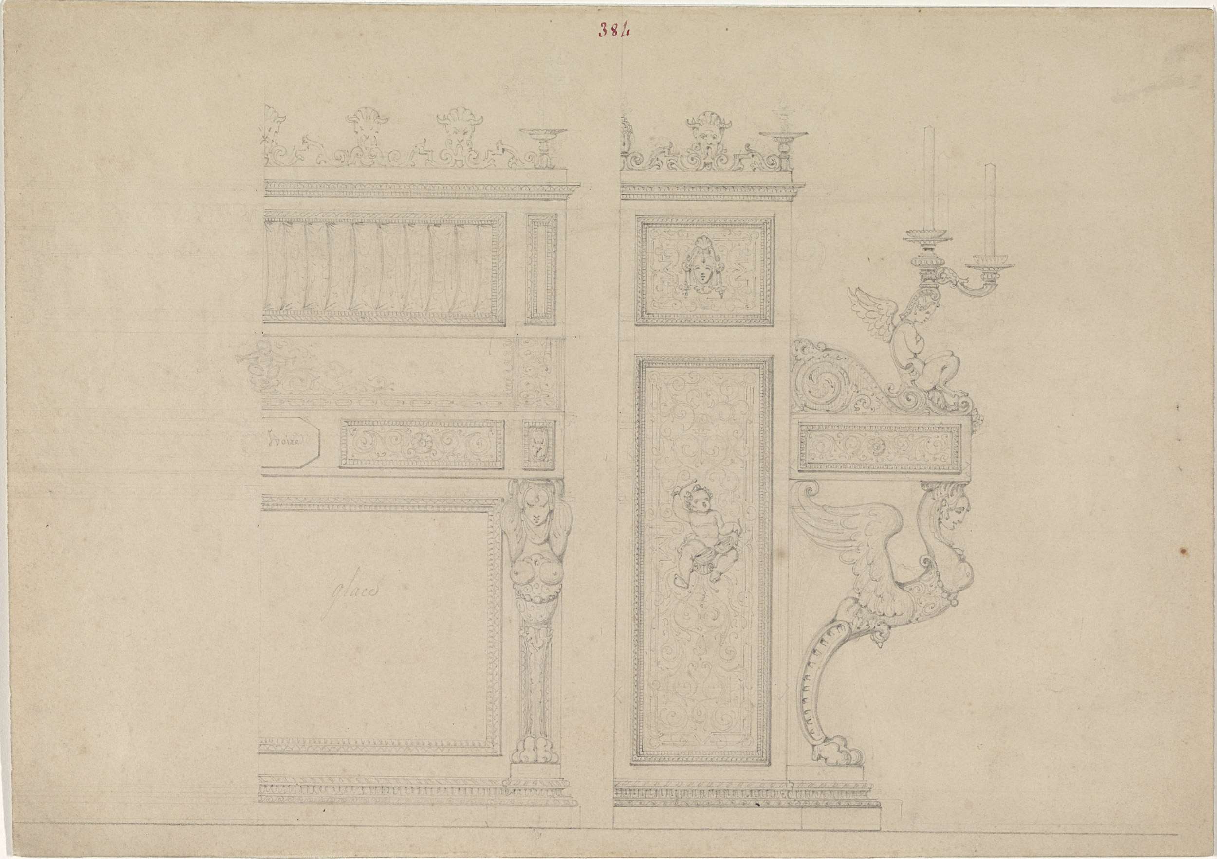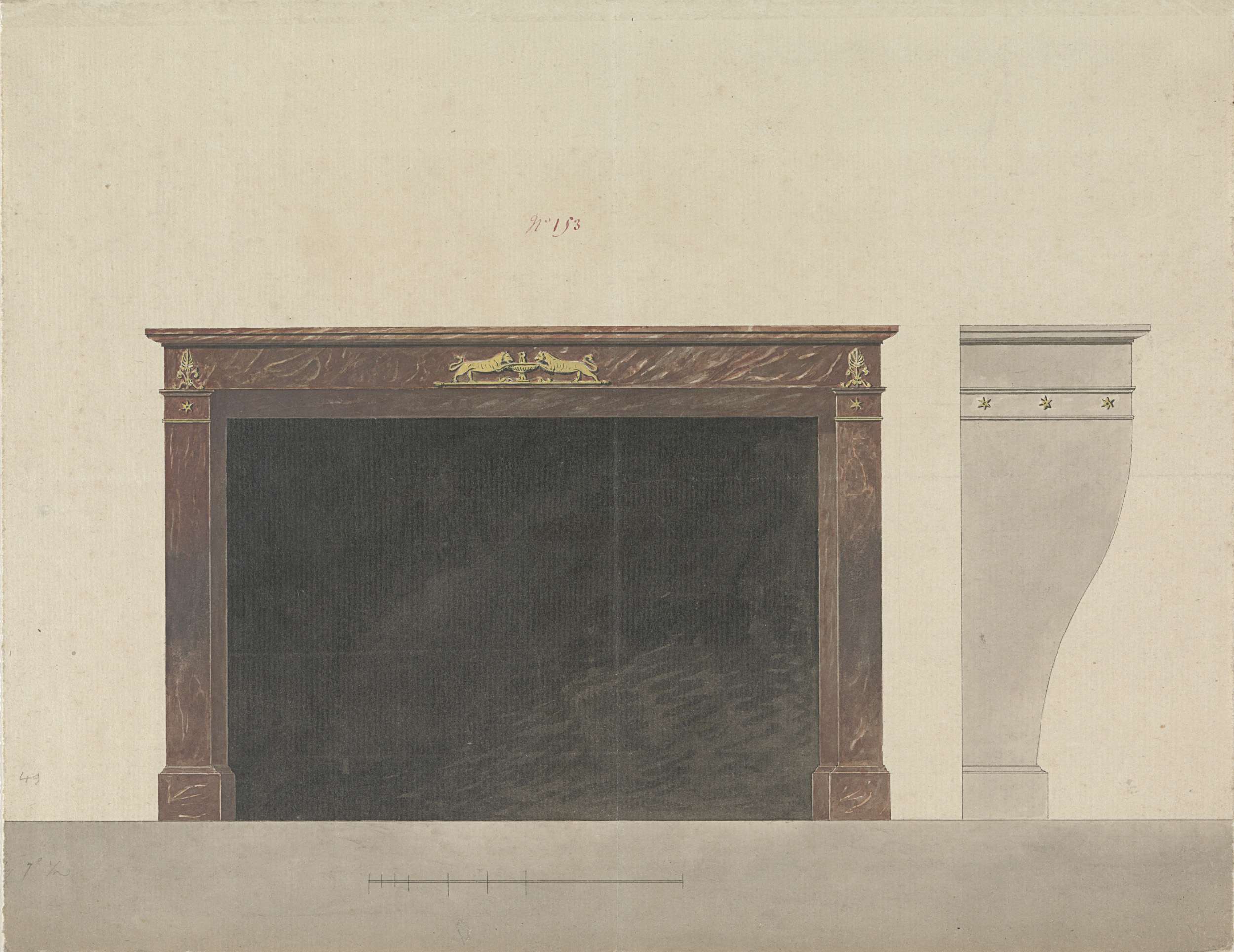 Ontwerp voor een schoorsteen met spiegel, feu, wanda...